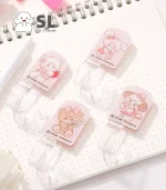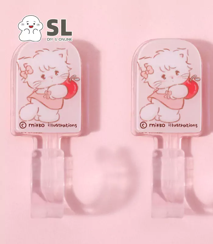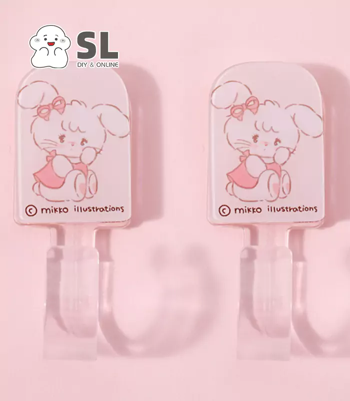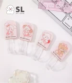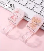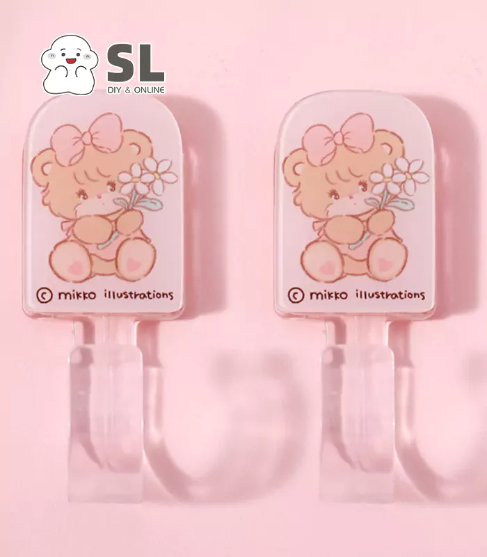 The hooks are crafted from a combination of clear plastic for the functional base and an acrylic overlay for the design. The acrylic portion is printed with high-quality, pastel illustrations, showcasing cute animals (such as bears and puppies), adding both utility and decoration.
